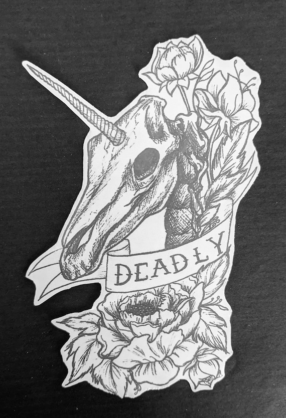 Unicorn Skull Tattoo Design Sticker Etsy